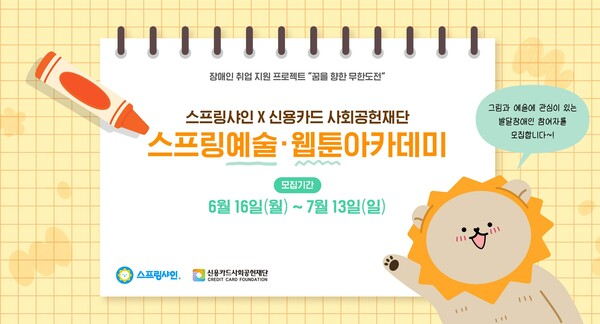 재능 있는 발달장애인의 예술 활동을 지원하는 사회적기업 스프링샤인 사회적협동조합은 신용카드사회공헌재단의 후원으로 ‘2025 스프링 예술·웹툰 아카데미’를 운영한다고 3일 밝혔다.