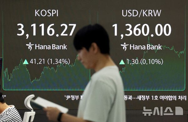 상법 개정안이 통과하면서 전날 코스피는 41.21포인트(1.34%) 뛴 3116.27에 마감했다. 종가 기준 연중 가장 높은 수준까지 올랐다. 역대 최고치는 지난 2021년 6월 25일에 기록한 3316.08이다.