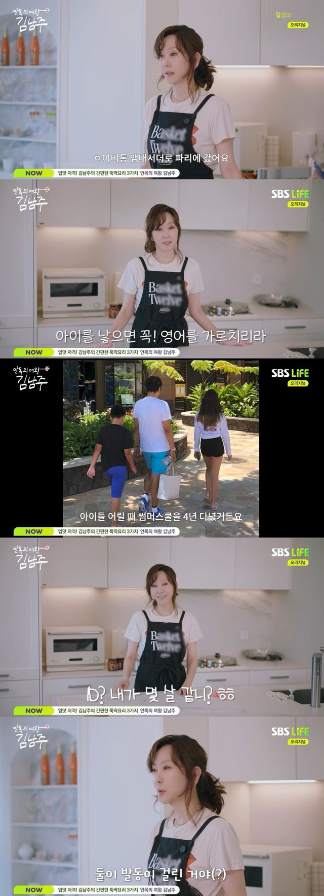 3일 방송된 SBS Life '안목의 여왕 김남주'에서 김남주는 자녀들이 과거 4년간 하와이에 썸머스쿨을 다녔던 시절, 김승우와의 일화를 공개했다.