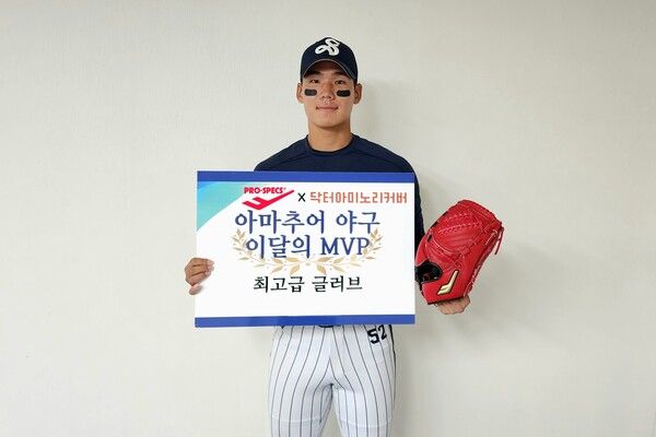[STN뉴스] 윤홍 기자┃서울고등학교 2학년 투타 겸업 유망주 김지우가 프로스펙스가 주관하는 ‘닥터아미노리커버 이달의 MVP’ 수상자로 선정됐다.