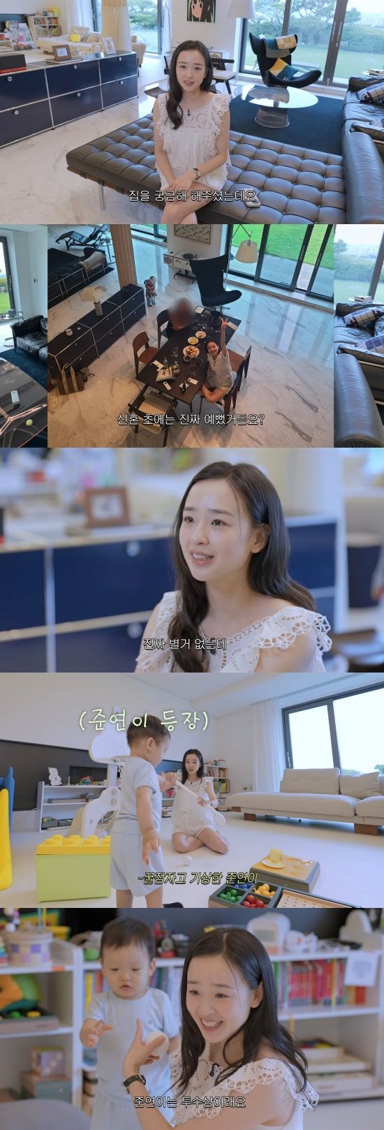 영상 속 손연재는 "많은 분들이 집을 궁금해 해주셨는데 드디어 공개한다"면서 "신혼 초에는 진짜 예뻤다. 그런데 이제는 완전히 준연이한테 점령당한 거실을 보여드리겠다. 진짜 별거 없다"고 말했다.