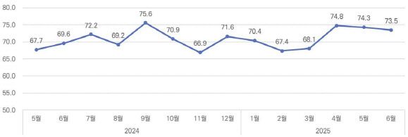 7월 전망지수는 6월 실적지수보다 3.1포인트 낮은 70.4이다.