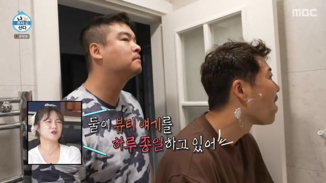 그 사이 전현무, 이장우는 얼굴 가꾸기에 나섰고, 박나래는 “둘이 뷰티 얘기를 온종일 하고 있다”라고 질색했다. 두 사람은 같이 만족스러운 듯 거울을 봤고, 전현무는 안정환, 김재원의 광고를 언급했다. 그러나 코쿤은 “더덕 같다”라고 했고, 전현무는 “더덕이라니. 엄지, 검지발가락”이라고 말해 웃음을 안겼다.