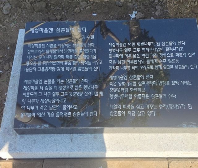 반면 마을회는 비석 설치의 절차적 정당성과 내용을 문제 삼았다. 김영생 제성마을회장은 “마을회가 공식적으로 반대하고 있는 비석을 시에서 무단으로 설치해 항의했다”며 “시에 나오는 쫓겨났다는 등 내용이 사실과 다르고, 마을 주민 다수가 아닌 소수 반대 주민만을 위한 비석 설치”라고 설명했다.