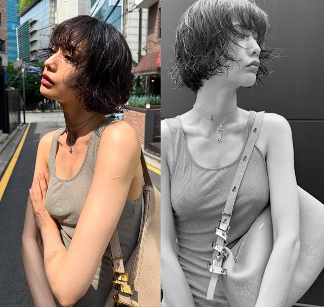 또한 나나는 볼드한 골드 디테일이 포인트인 베이지 빅백을 무심하게 걸쳐 트렌디한 무드를 더했고, 자연스러운 글로시 메이크업과 레이어드 초커로 힙한 패션 센스를 드러냈다.