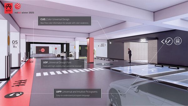 [뉴스락] 현대건설이 개발한 지하주차장 웨이파인딩 시스템 '히어 앤 썸웨어(Here & Somewhere)'가 세계 3대 디자인 어워드 중 하나인 레드닷 디자인 어워드 2025 디자인 콘셉트 부문 위너로 선정됐다고 4일 밝혔다.