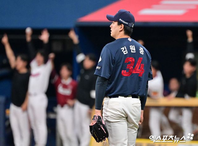 김원중은 후속타자 오지환에게도 우전 안타를 맞아 1사 1, 2루 위기에 빠졌다. 이후 김원중은 천성호와 상대해 우익수 쪽 직선타를 허용했다. 이 타구는 우익수의 어정쩡한 다이빙 캐치로 이어졌고, 2루 주자 박동원이 귀루에 실패하면서 더블플레이가 돼 경기가 끝났다.