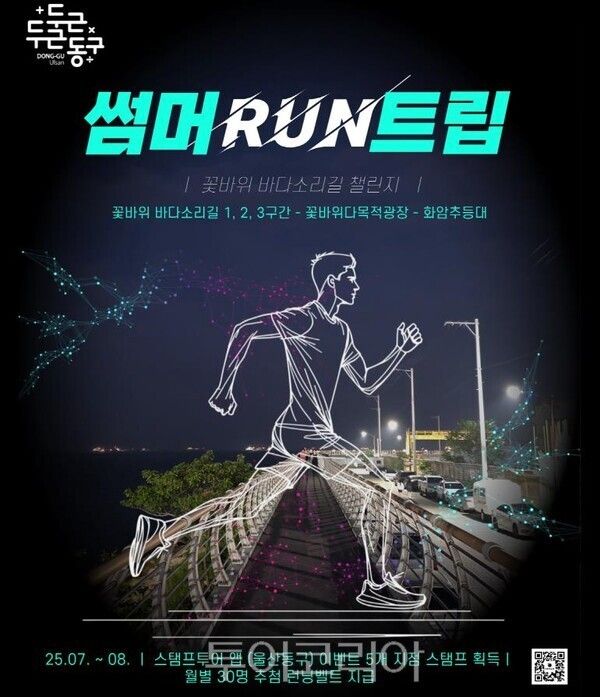 [투어코리아=이철진 기자] 울산 동구는 여름휴가철 관광 활성화를 위해 7-8월 모바일 스탬프 투어 이벤트 ‘썸머 런트립: 꽃바위 바다소리길 챌린지’를 운영한다.