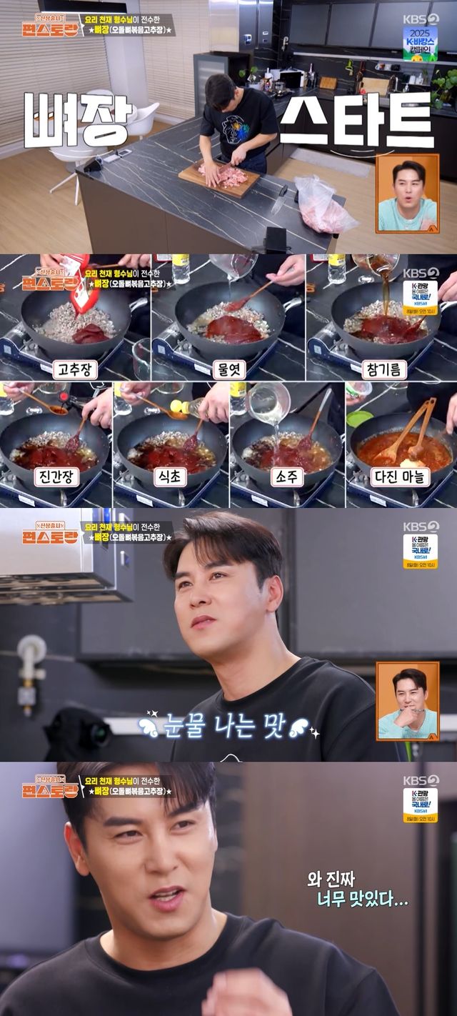 4일 방송된 KBS 2TV '신상출시 편스토랑'(이하 '편스토랑')에서는 주방의 신사 장민호가 형수님의 특급 레시피로 만드는 오돌뼈장을 공개했다.