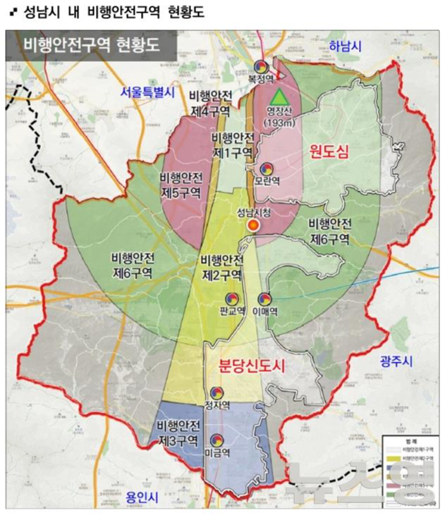 비행안전구역이 조정되면, 야탑동과 이매동 일부 지역의 비행안전 2구역이 6구역으로 변경돼 건축 가능 높이가 높아지게 된다.