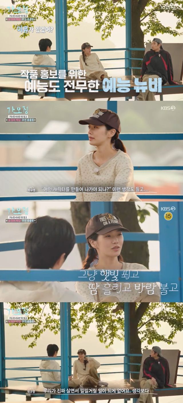 이에 김정현은 이유가 있었냐고 물었고, 박규영은 "'어떤 캐릭터를 만들어 나가야 하나' 그런 생각도 들었다. 오늘 보니까 확신이 들었다. 멍을 때리고 있었는데 다들 약간 별거 아닌 거로 낄낄거리고, 햇빛 쐬고 땀 흘리고 바람 불고, 소소한 거가 너무 좋았다"라고 털어놨다.