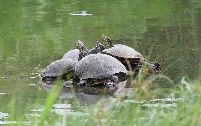 경포천 운정교 부근에는 크지 않은 돌에 붉은귀거북 여섯 마리가 한꺼번에 올라앉아 머리를 쳐들고 햇볕을 쬐고 있는 모습도 관찰됐다. 하천 옆으로 연결된 산책로에 운동하는 시민이 지나자 1∼2마리는 재빨리 물속으로 몸을 감췄다가 시간이 지난 뒤 다시 올라오기도 했다. 인근의 작은 흙더미에도 5∼6마리가 햇볕을 쬐고 있었다.