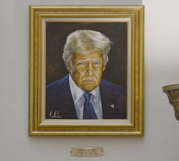 새로운 초상화는 미국 애리조나주 템피 출신의 예술가 바네사 호라부에나가 제작했다. 영국 가디언에 따르면 트럼프 대통령이 초상화에 금색 테두리를 넣어 빛을 받으면 반짝거릴 수 있게 해달라고 요청했다.