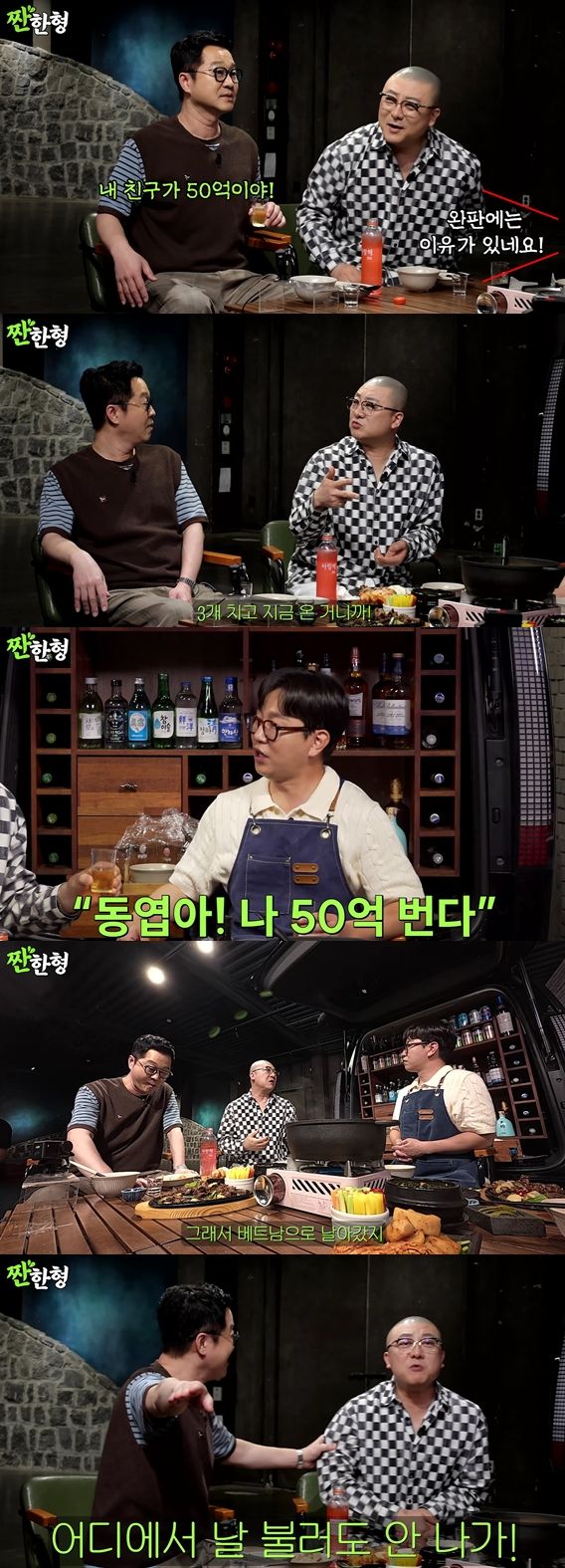 지상렬이 염경환의 매출이 50억이라고 언급하자 엄경환은 "홈쇼핑이 늘 생방송이다. 늦게 끝나고 아침에 홈쇼핑이 있으면 코디도 없고 매니저도 없고 혼자 다 하고 다녀야 된다"라며 다인이 함께 하는 술자리가 오랜만이라고 설명했다.