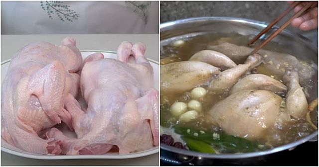 끓는 물에 닭을 넣고 3~5분간만 데친 후 꺼내 찬물에 헹구면, 겉면의 불순물과 기름이 제거된다. 이때 데친 물은 버리고, 본격적으로 삼계탕을 끓일 냄비에는 맑은 물을 새로 받아야 한다.