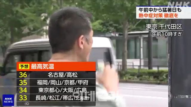 NHK는 “7월 들어서도 일부 지역 기온이 38도를 넘어서며, 도쿄와 사이타마, 교토 등 주요 도시에서는 오전부터 35도를 훌쩍 넘는 등 극한 더위가 이어지고 있다”고 전했다.