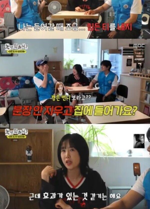그러자 유재석은 "그건 있다. 걔는 직접 사진을 찍어서 보내는데, 난 들어갈 때 조금 힘든 티를 낸다"고 깜짝 고백했다. 별이 "분장을 안 지우고 집에 들어가냐? 경은 언니 보라고?"라고 되묻자, 유재석은 "가끔 나도 모르게 깜빡하고 (분장을 안 지우고) 들어간다"며 웃었다. 이에 별은 "근데 그게 효과가 좀 있는 것 같다. 아내로서"라고 덧붙이며 유재석의 '남편 전략'이 통하고 있음을 인증해 폭소를 유발했다.