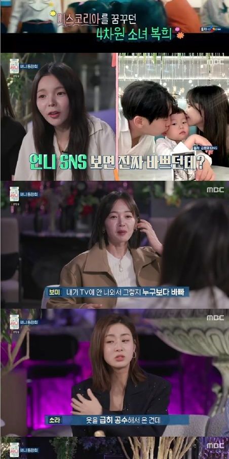 김보미가 등장하자 멤버들은 "어떻게 시간을 내고 왔어"라며 반가워했다. 김보미는 "나 애 둘을 낳아가지고. 내가 TV에 안 나와서 그렇지 누구보다 바빠""라며 근황을 밝혔다.