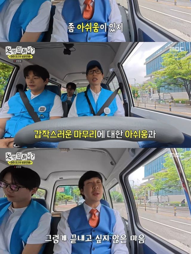 "마지막 편..."이라며 잠깐 생각에 잠긴 유재석은 "못 본 게 아니라 안 본 것 같다. 별로 그렇게 보고 싶지 않았고, 내가 늘 얘기하지만 마지막 회라는 게 갑작스러운 마무리에 대한 아쉬움과 화려하게 끝내자는 건 아니지만 '이게 마지막 회는 아닌 거 같다'는 생각"이라고 밝혔다.