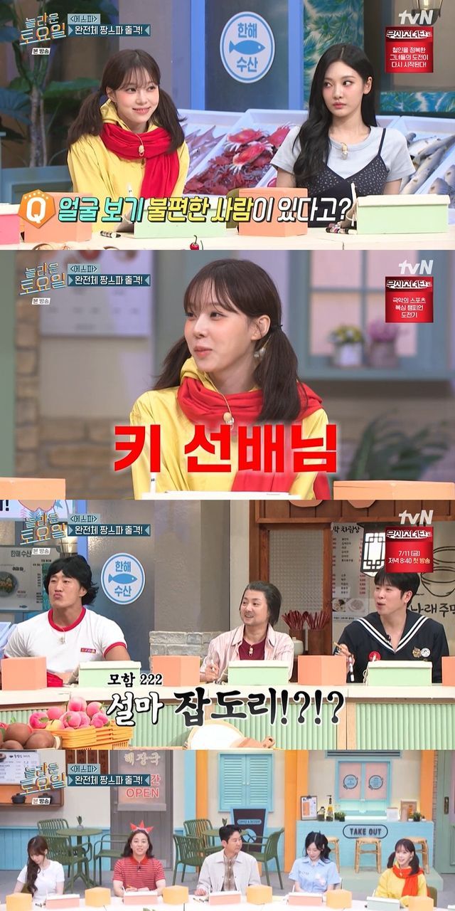 윈터는 "저는 키 선배님"이라며 키를 바라봤고, 이에 깜짝 놀란 키는 "왜?"라며 당황해했다.
