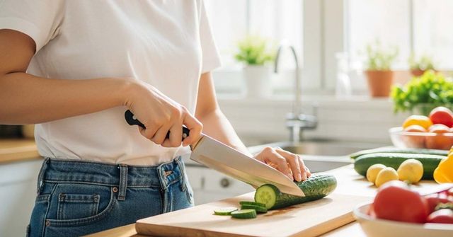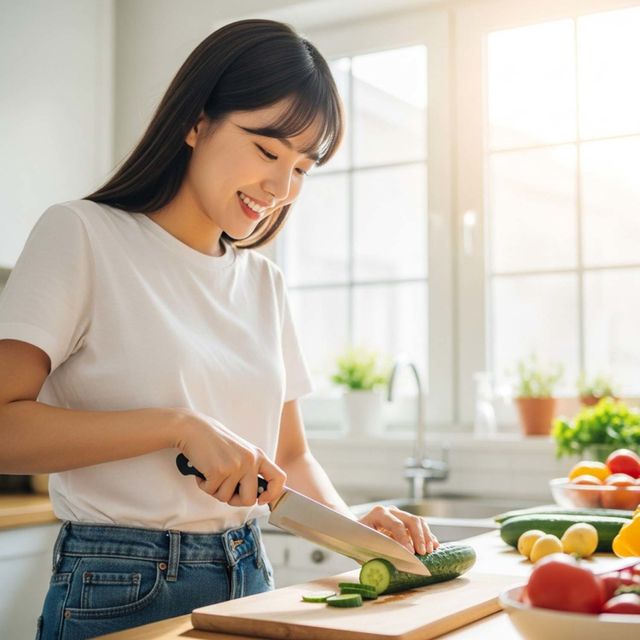 오이를 썰고 있는 여성. AI 툴로 만든 사진이다.