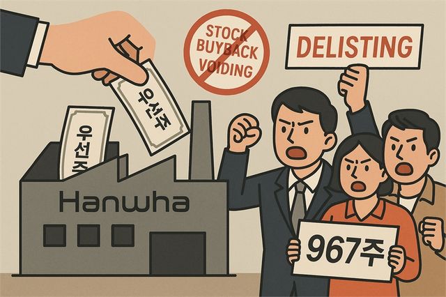 한화그룹이 자사주 소각으로 한화1우선주(이하 한화우선주)의 상장폐지 요건을 충족시키자 소액주주들이 강하게 반발하고 나섰다. 이들은 자사주 소각이 의도된 상장폐지 수단이었다며 주주권 침해와 자본시장 신뢰 훼손을 문제 삼고 있다.