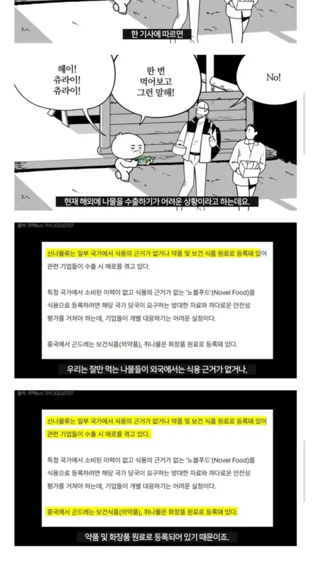 과거에 산나물을 수출 하려는 시도가 몇번 있었지만