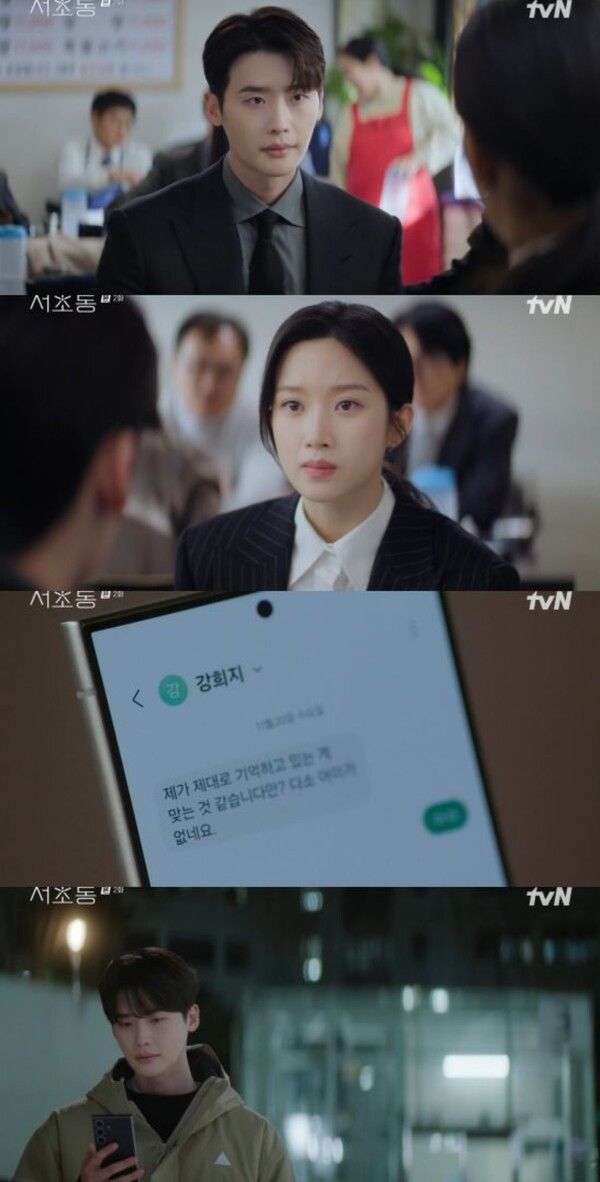 7월 6일 방송된 tvN 새 토일드라마 '서초동' 2회에서는 강희지(문가영 분)가 안주형(이종석 분)과 10년 전 홍콩에서 만났다고 밝히는 모습이 그려졌다.
