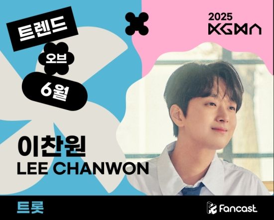 최근 팬캐스트는 6월 3일부터 30일까지 진행한 '2025 코리아 그랜드 뮤직 어워즈(KGMA)' 월간 투표인 '트렌드 오브 6월'에서 이찬원이 트롯 부문 1위에 올랐다고 밝혔다.