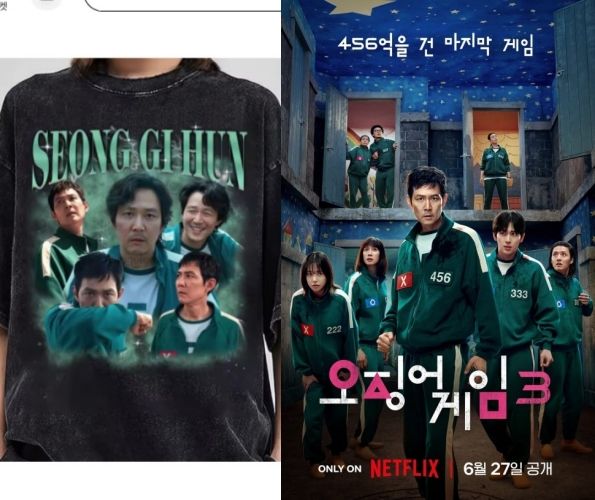 전 세계 고객을 대상으로 판매하는 알리익스프레스에서 '오징어 게임3'에 관련한 티셔츠, 걸게 그림 등 다양한 불법 굿즈가 판매되고 있는 것.
