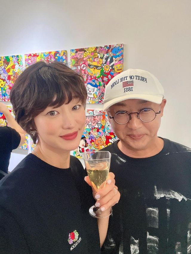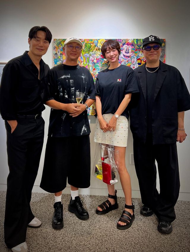 사진 속에는 이희준과 쿤 작가의 전시회를 찾은 김재욱, 최여진 부부의 모습이 담겨 있다. 가벼운 차림 속 편안한 분위기가 훈훈함을 더한다.