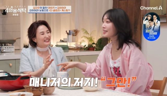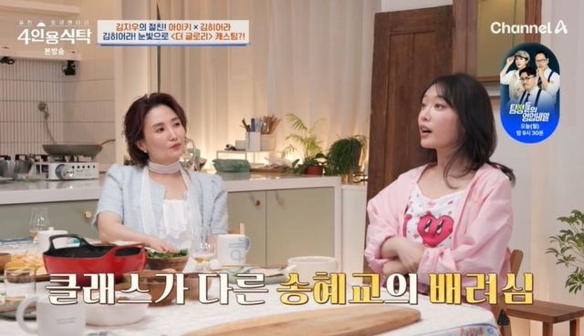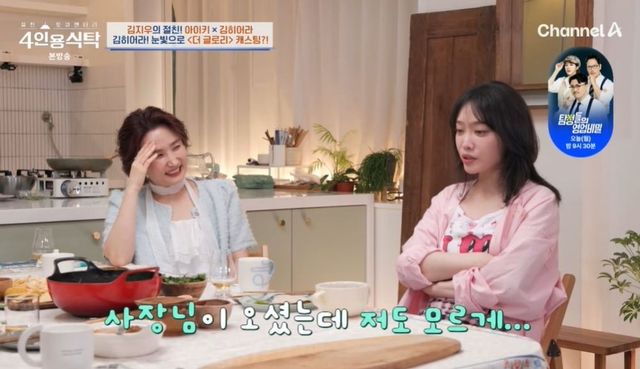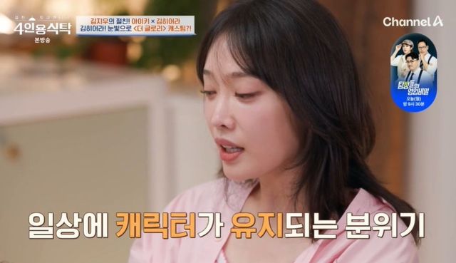 7일 방송된 채널A ‘절친 토큐멘터리-4인용 식탁’에서는 김지우가 김히어라, 아이키를 초대했다.