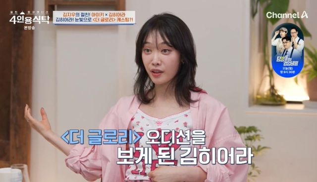 이어 김히어라는 ‘더 글로리’ 오디션을 봤다고. 김히어라는 “단역 하나 보는 줄 알고 읽었는데, 자꾸 이사라 역할로 계속 주더라. 날 너무 좋아해 주시고, 제 눈을 보면서 ‘네 눈X이 보통 아니다’라고 하셨다”라고 떠올렸다.