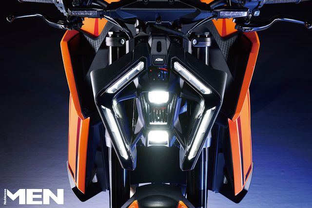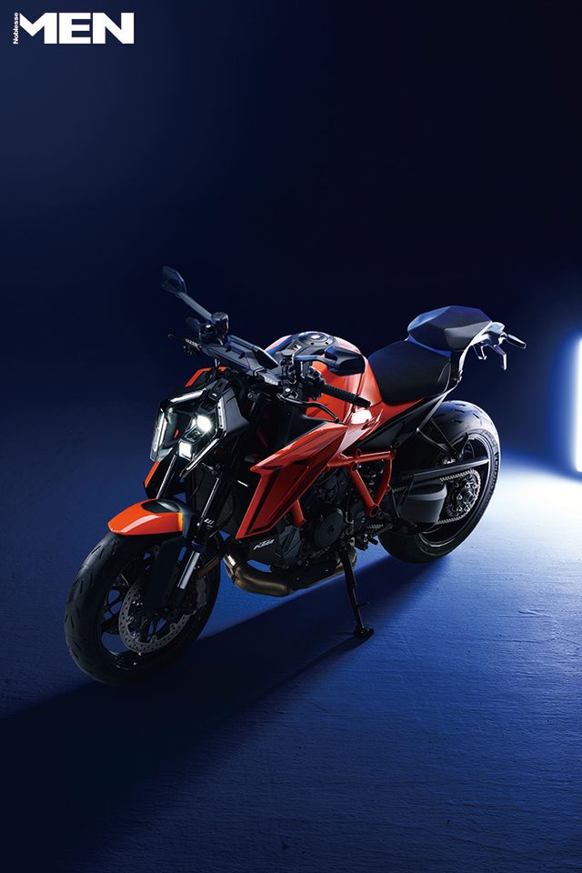 중앙에 자리한 날카로운 헤드라이트와 위협적인 형상의 DRL, 강렬하게 빛나는 오렌지 컬러 외관까지. 1390 Super Duke R은 야수적 감각을 극대화한 네이키드 바이크다. 윙렛이 적용된 새로운 프런트는 고속 주행 시 다운포스를 만들어 앞바퀴 접지력을 제고하고, 넓어진 연료 탱크는 하체 접촉 면을 확보한다. 그 결과 라이더는 더 빠르고 과감하게 코너에 진입할 수 있으며, 원하는 라인으로 정밀하게 바이크를 조종할 수 있다. LC8 V-트윈 엔진이 품어내는 주행 성능은 최대출력 190마력, 최대토크 14.79kg·m. 여기에 201kg의 건조 중량(연료 제외)은 사실상 슈퍼바이크에 가까운 수치다. 특정 페어링 없이 오롯이 몸으로 받는 공기저항, 시트 아래 고동치는 V-트윈 엔진의 리듬, 그리고 코너 진입 직전 타이어와 노면이 나누는 피드백은 네이키드 바이크만의 미덕을 충실히 재현한다. 시트 포지션은 일상과 트랙 주행 두 영역에서 모두 적합한 균형감을 보여준다. 834mm의 시트고는 라이더의 움직임을 자유롭게 하며, 무릎과 탱크 사이의 접점은 제동 시 확실한 지지를 제공한다. 브레이크 시스템은 브렘보 스틸레마 캘리퍼와 320mm 디스크 조합으로 구성되며, Bosch 9.3 MP 기반의 코너링 ABS와 슈퍼모토 모드가 노면 상황에 따라 제동력을 정밀하게 조율해준다. 그 덕분에 어떠한 상황에서도 차체는 흔들리지 않고, 라이더는 부담 없이 속도를 밀어붙일 수 있다. 페어링이 없기에 가능한 정제된 본성, 그리고 날것의 퍼포먼스. 1390 Super Duke R이 도로 위에서 군림하는 방식이다.
