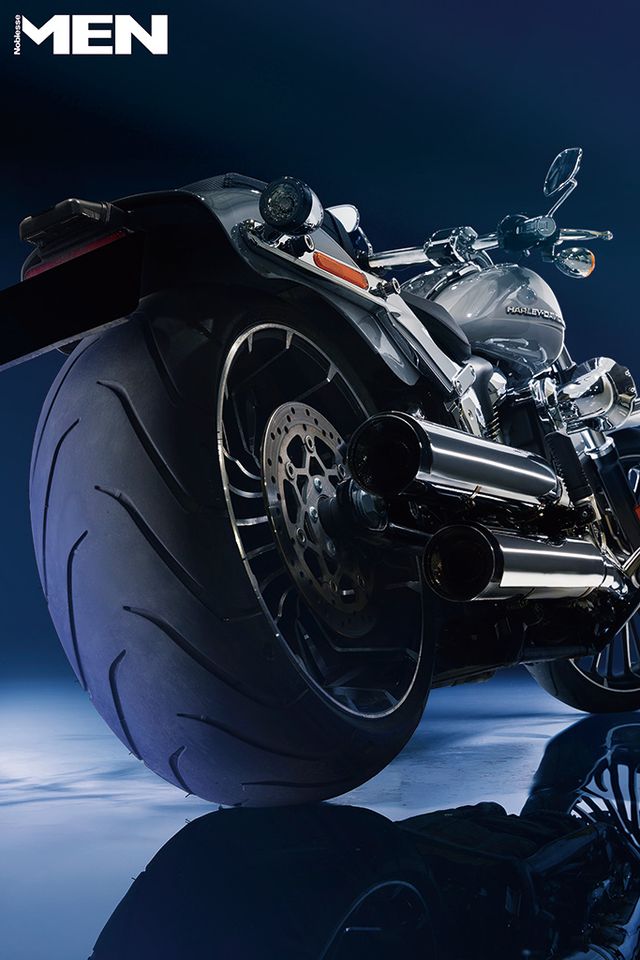 크롬의 서늘한 윤기와 유광 스테인리스스틸의 날카로운 텍스처, 그리고 바닥 가까이 낮게 깔린 차체까지. 브레이크아웃 117은 그 자체만으로도 보는 이를 압도한다. 길게 뻗은 포크와 풍만한 리어 펜더, 유려한 연료 탱크 라인은 시각적 균형감과 함께 강렬한 질주 본능을 자극한다. 시동을 걸면 1923cc 밀워키에이트 117 엔진이 저회전부터 굵직한 토크를 밀어낸다. 진동은 거칠지만 의외로 정제되어 있고, 스로틀을 당길 때마다 고동이 심장처럼 올라온다. 속도를 폭발적으로 끌어올리기보다는 묵직하게 밀어붙이는 스타일이지만, 정속 주행에서도 엔진 리듬은 일정하게 이어진다. 라이더는 그 박자에 맞춰 천천히 차량과 동화된다. 하드 테일처럼 보이는 외관과 달리 리어 서스펜션은 차체 아래 숨어 있어 클래식한 실루엣은 그대로 유지한다. 고속에서의 주행 안정성은 더없이 인상적이다. 긴 휠베이스(1695mm)가 흔들림 없는 직진성을 만들어내고, 브레이크 시스템은 리어 중심임에도 전후 밸런스가 잘 맞춰져 있다. 이 바이크는 코너보다는 속도와 리듬이 이어지는 도로에서 진가를 발휘한다. 속도보다는 감각에 집중할 수 있는 바이크. 그 감각이 브레이크아웃 117만의 가치를 찬찬히 수식해준다.