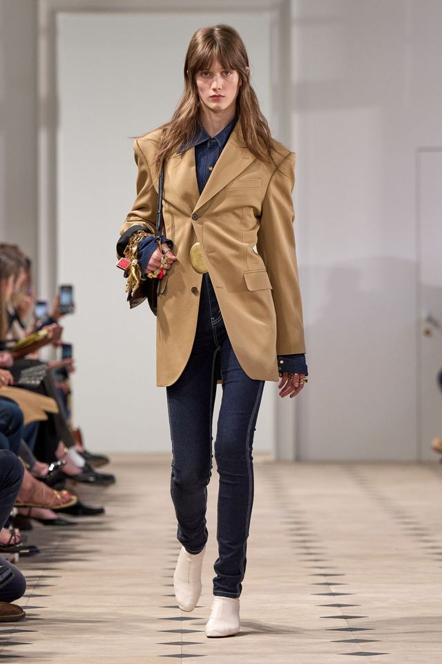 과거 유수의 하우스에서 구조적인 균형미에 능한 면모를 보여주며, 디자이너보다는 건축가에 가까운 감각을 뽐내던 마이클 라이더의 진가가 드러나는 순간이었습니다. 마이클 라이더는 익숙한 버버리, 조셉, 보테가 베네타 등을 거치며 실루엣과 구조에 대해 뚜렷한 시각을 쌓아온 인물이죠. 조용하지만 강한 손길로 클래식과 컨템포러리를 넘나 들어온 그의 미학은 이번 셀린느 데뷔 쇼에서도 고스란히 드러났습니다. 화려한 장식 대신 옷 그 자체의 비례와 균형에 집중했죠. 날카로운 칼처럼 떨어지는 테일러링과 유연한 드레이핑, 차분한 컬러 팔레트에선 그가 10년 간 몸 담아 온 피비 파일로의 셀린느의 유산도 엿볼 수 있었고요.