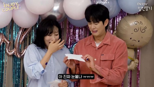성별을 모두 확인한 후 감격하는 임라라(왼), 손민수(오)의 모습. / 유튜브 '엔조이커플enjoycouple'