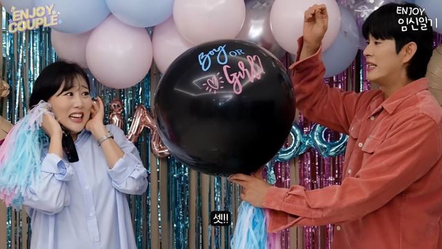 이어 두 번째 풍선을 터뜨리자 딸을 의미하는 분홍색 컨페티가 흩날렸다. 이로써 아들, 딸 한 명씩 남매 쌍둥이임이 확정됐다.