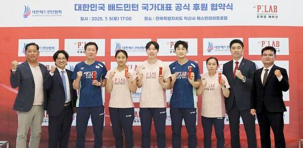 후원 협약식은 지난 5일 전북 익산서 피랩과 대한배드민텁협회 간 진행됐다. 향후 대한민국 배드민턴 국가대표팀은 메이신 스프레이를 사용할 예정이며 피랩 브랜드를 대표팀 유니폼을 통해 홍보할 예정이다.