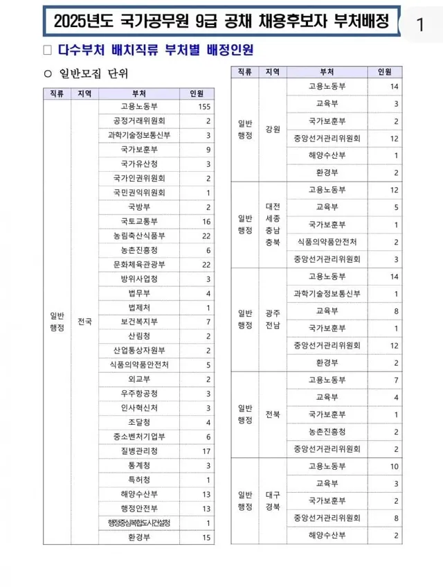 * 일반행정 직렬이랑 고용노동부 직렬이 따로 구분되어있어서 원래는 일반행정에서는 안뽑거나 한자릿수 정도만 배치해왔었음