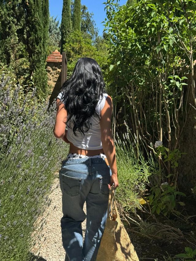 수영복을 리조트 룩처럼 변신시키는 방법이 아직 어렵다면 카일리 제너의 아웃핏에서 힌트를 얻어보세요. 비키니의 패턴이 자연스럽게 노출될 수 있도록 시어한 톱을 활용하고 아래에는 청바지의 허리를 살짝 풀어 로우 웨이스트로 착용해 주었죠. 이뿐만 아니라 자연스럽게 비키니 톱을 상의로 활용하고 스크런치나 스카프처럼 활용도 높은 아이템들로 포인트를 더할 수도 있답니다.