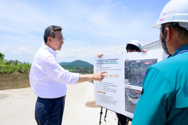 이날 오순문 서귀포시장도 천미천 우수저류지 설치사업 현장을 방문하여 주요 시설에 대한 점검과 관계자들의 의견을 청취했다.