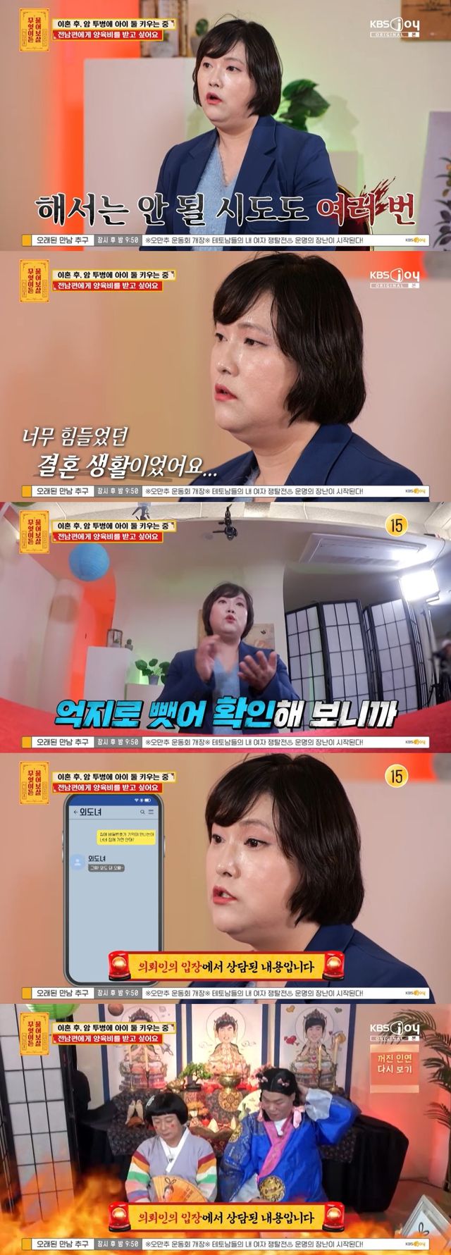 7일 방송된 KBS Joy '무엇이든 물어보살' 323회에는 전남편이 양육비를 주지 않고 있다는 사연자가 등장했다.