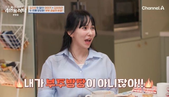 7일 방송된 채널A ‘절친 토큐멘터리-4인용 식탁’에서는 김지우가 김히어라, 아이키를 초대했다.