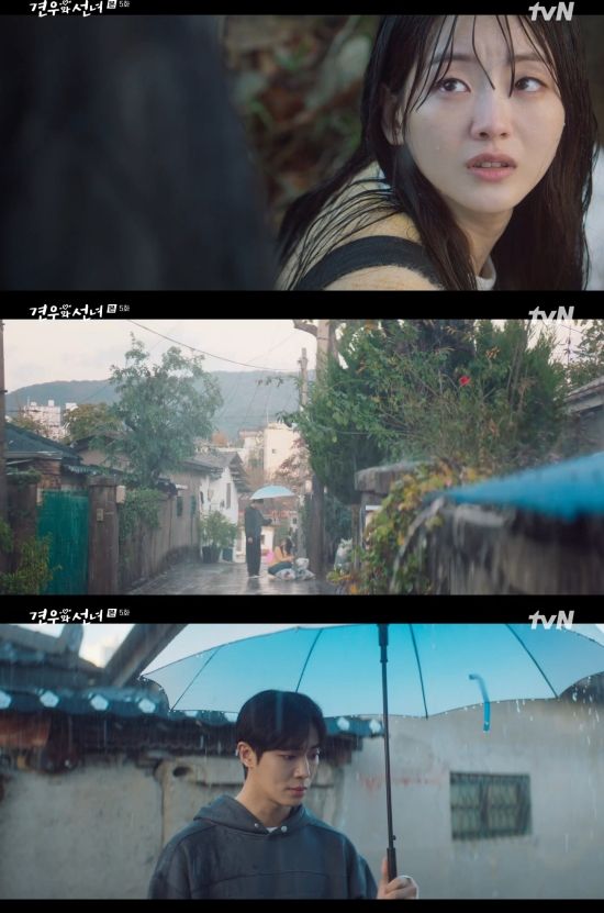 7일 방송된 tvN 월화드라마 '견우와 선녀' 5회에서는 박성아(조이현 분)가 배견우(추영우)에게 정체를 들킨 모습이 그려졌다.