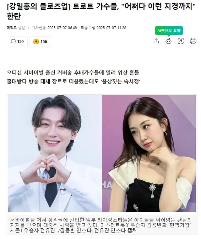 기존 트로트가수들은 후배들 눈치보고 일이 없다함 ㅋㅋㅋ