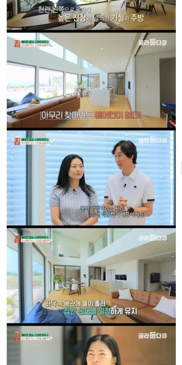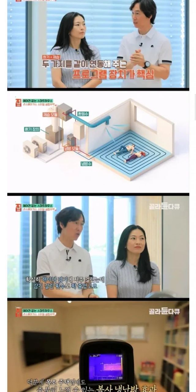 태양광 발전으로 전기세도 거의 안 나오고 복사 냉난방으로 에어컨 없이도 4계절 내내 쾌적하게 온, 습도 관리가 되고 캡처에는 안 나와 있습니다만 환기시스템도 자동화 되어 있어서 공기질도 실시간으로 모니터링 ㄷㄷ