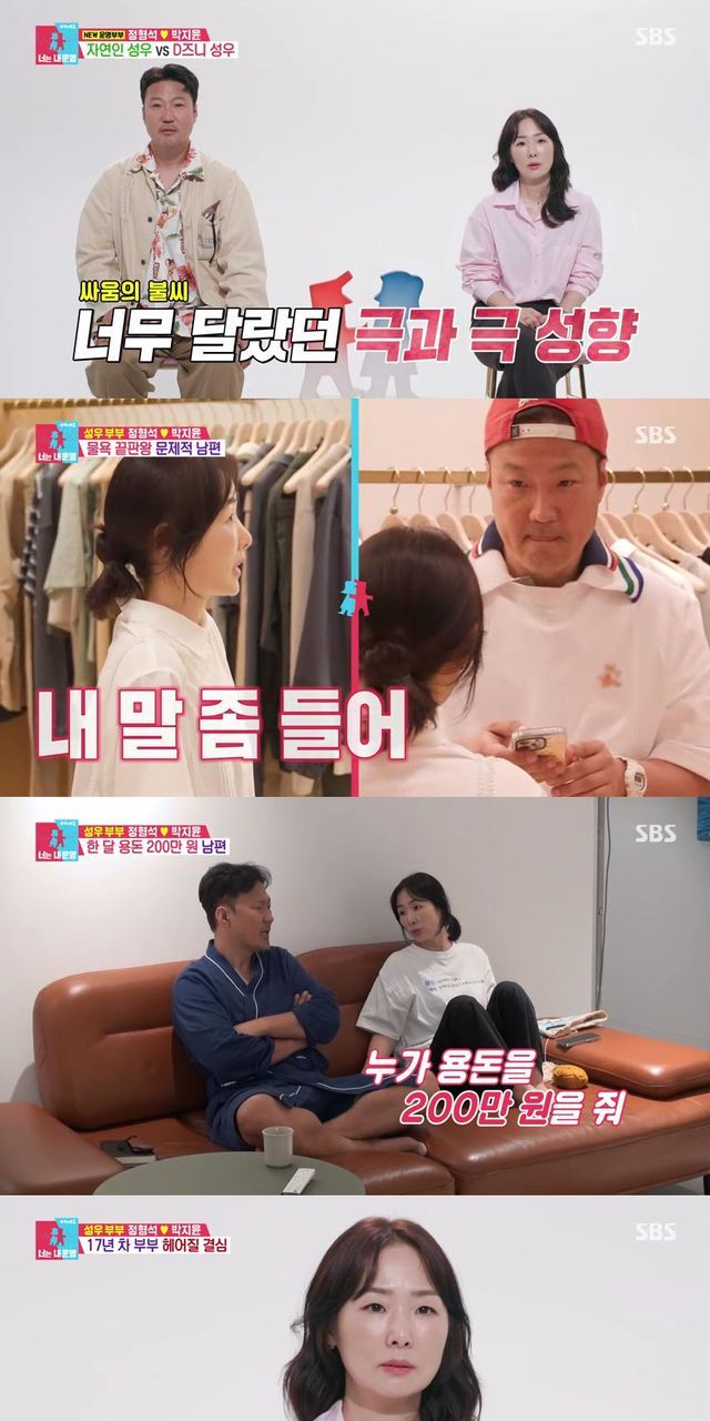 그런가 하면 이날 정형석은 한 달 용돈 200만 원도 부족하다고 투정을 부리며 철부지 남편의 모습을 보였다. 이에 서장훈도 “애들도 있는데…순수 용돈만 보면 저보다도 많이 쓴다”고 했다. 가계를 신경 쓰지 않고 주변 지인들을 챙기며 하고 싶은 것들만 생각하는 듯한 남편의 모습에 박지윤은 답답함을 드러냈다. 두 사람의 의견 차는 좁혀지지 않았고, 박지윤은 노력하는 자신의 마음을 몰라주는 남편에 “나는 내 가족이 먼저다”며 울컥 눈물을 보였다.