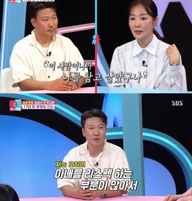 그런 정형석은 이날 세심한 깜짝 선물과 함께 마음을 담은 장문의 편지를 박지윤에게 건네 눈길을 끌었다. 편지에는 정형석의 아내를 생각하는 진심과 미안함이 고스란히 담겨 있었다. 그토록 듣고 싶던 미안하단 말에 박지윤은 결국 눈물을 보였고, 스튜디오에서도 “형석 씨가 한방이 있다”며 입을 모았다. 박지윤은 “예전엔 제가 혼자 다 참고 산다고 생각했는데 내 착각이었다. 이 사람이 이런 성격이기 때문에 나 같은 사람을 참고 살았다고 느끼고서는 되게 고맙다”고 했고, 정형석은 “아내를 존경하는 부분이 많다. 저보다 훨씬 나은 사람이라고 생각한다”고 서로 고마운 마음을 표현하며 17년 차 부부 다운 끈끈함과 애정을 드러냈다.