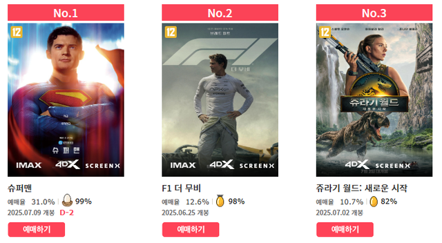 ‘슈퍼맨’ 전체 예매율 1위 굳건.. 극캉스 이끄나?